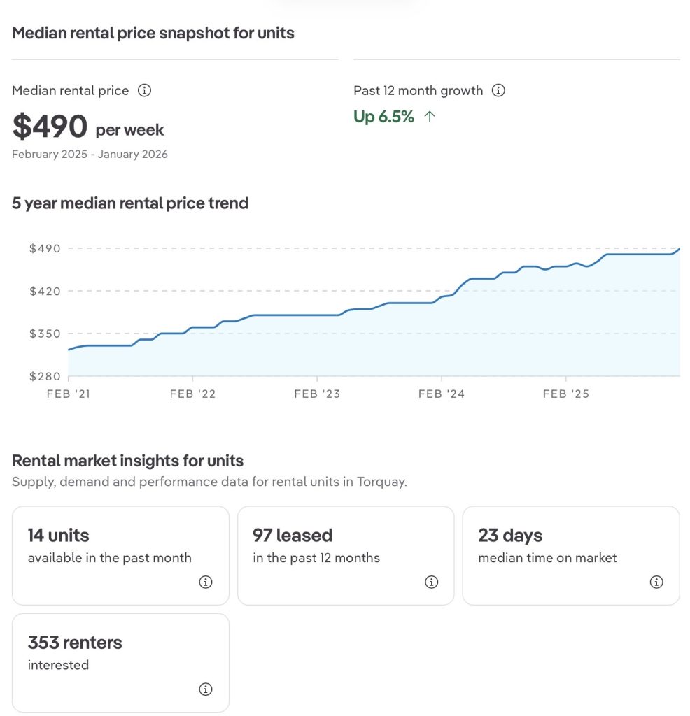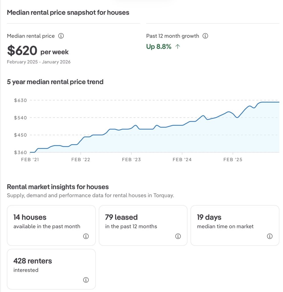 Snapshot of how RENTALS are performing in Torquay